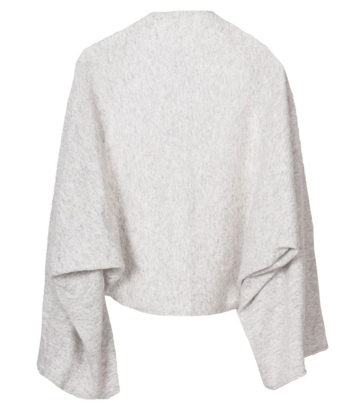 Kasjmier blend bolero stola in lichtgrijs. Doordat je de knoopjes kunt dichtknopen, kun je deze ook als poncho dragen.