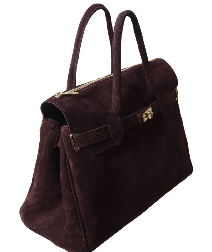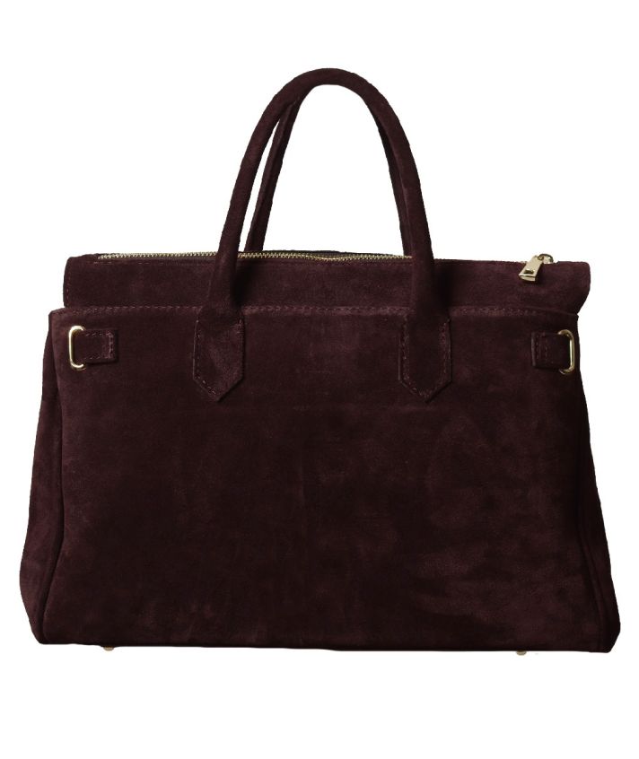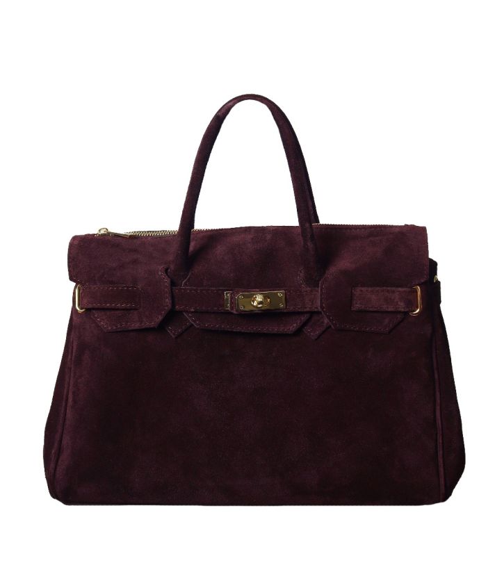 De Jessa handtas in burgundy / bordeaux van 100% suède leer heeft een tijdloos XL-model met een chique goudkleurige rits en draagsluiting. Binnenin vind je twee ruime vakken en een afsluitbaar middenvak met rits, ideaal voor je waardevolle spullen. Aan de onderkant is de tas afgewerkt met goudkleurige bodemnoppen, zodat het suède beschermd blijft tegen beschadigingen. Draag haar comfortabel over de schouder of stijlvol in de hand.