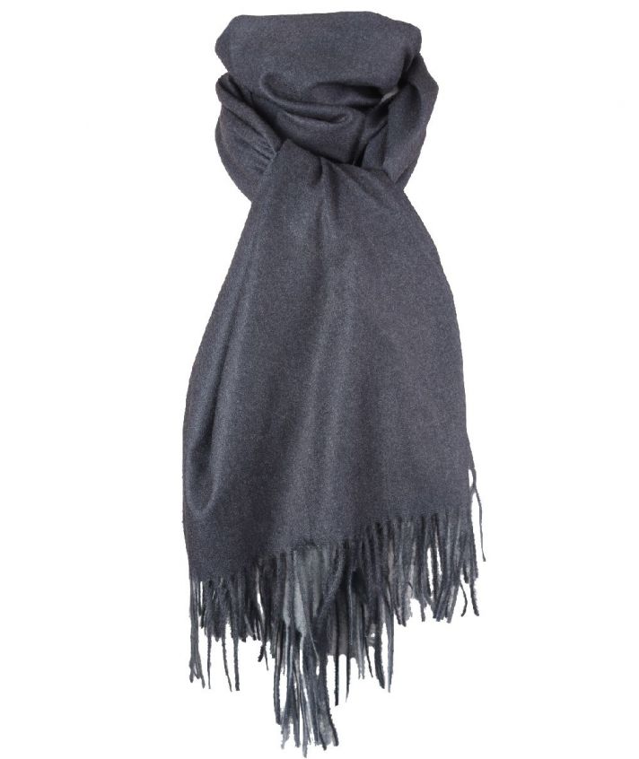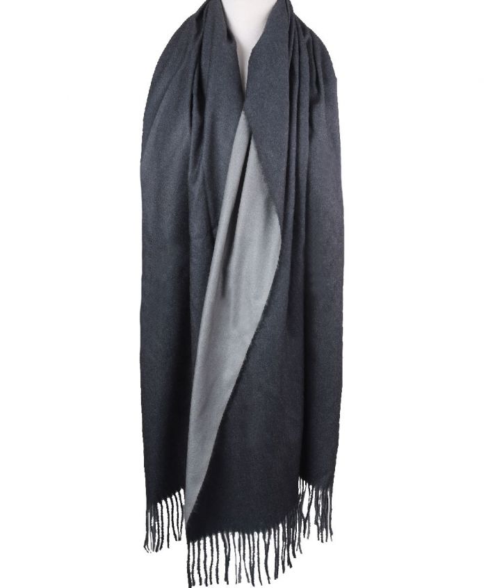 Prachtige sjaal gemaakt van zachte en natuurlijke materialen kasjmier en viscose in donker- en lichtgrijs.