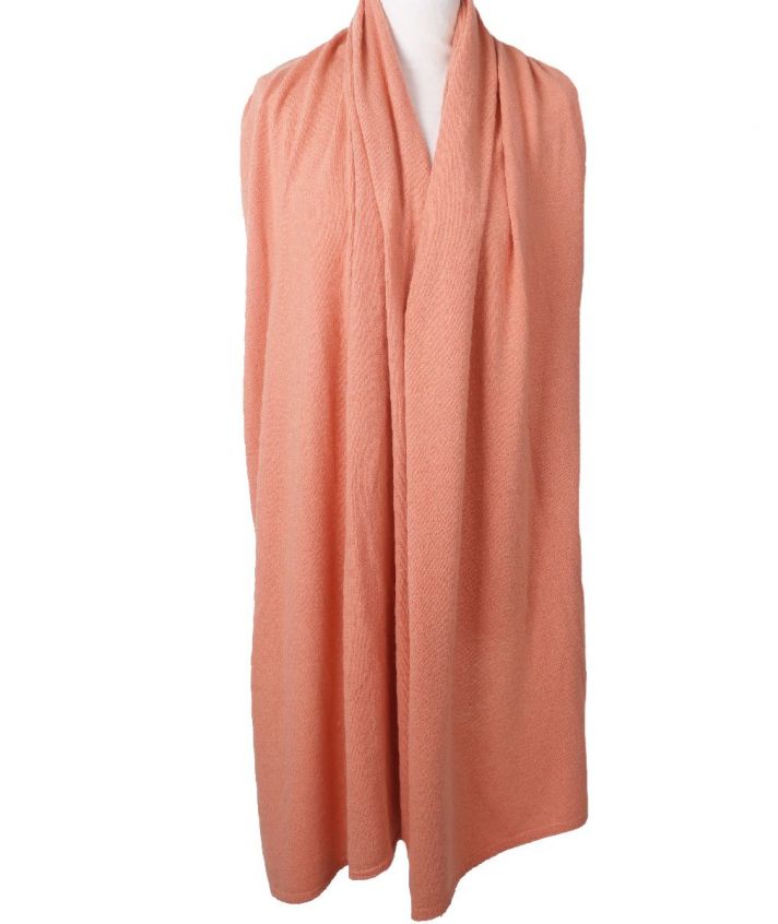 Uit onze cashmere collectie: superlichte sjaal/omslagdoek in zalmroze.
