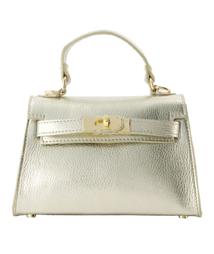De handtas Livia is vervaardigd van hoogwaardig echt leer en straalt tijdloze elegantie uit. Op de voorkant is de tas voorzien van een stijlvolle draaisluiting, afgewerkt met goudkleurige hardware voor een verfijnde uitstraling.Dankzij het afneembare en verstelbare hengsel kan de tas zowel in de hand als crossbody gedragen worden – ideaal voor dagelijks gebruik of een avondje uit.
