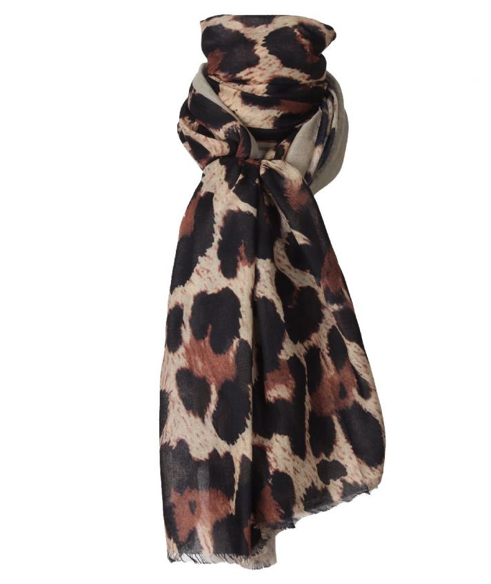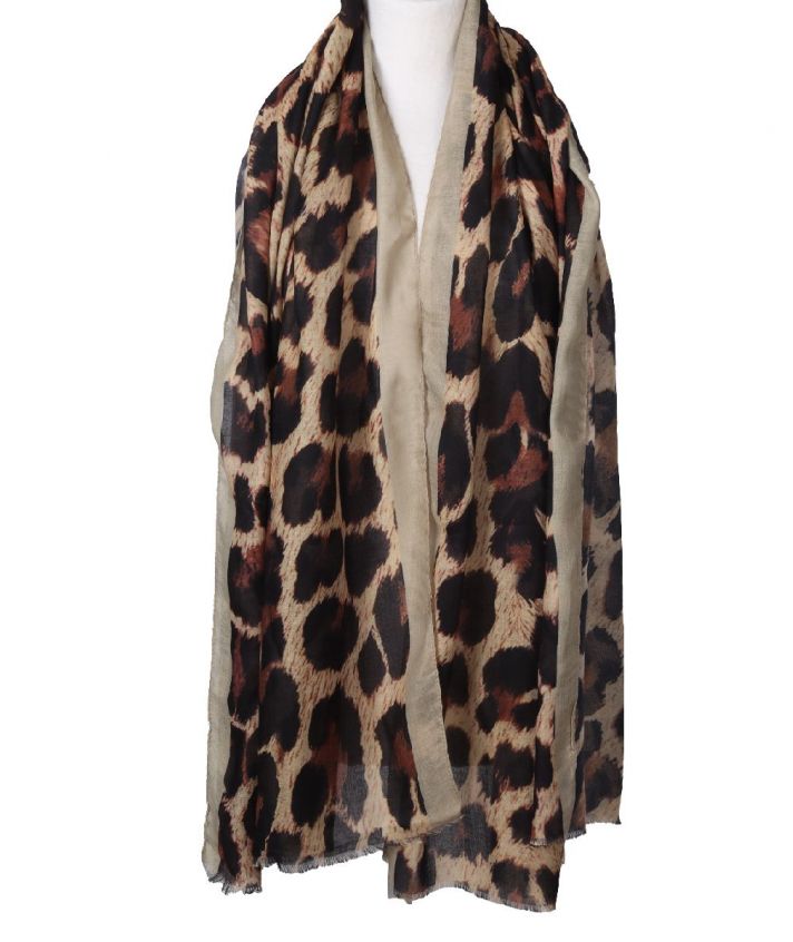 Panterprint sjaal met een streep in taupe. Gemaakt van zachte en comfortabele materialen, biedt deze sjaal zowel stijl als warmte. Ideaal om je outfit een extra flair te geven en een statement te maken.