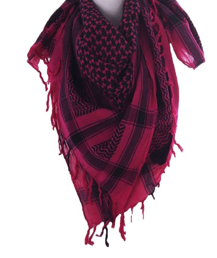 Originele keffiyeh / Arafatsjaal in hardroze-zwart met kwasten rondom
