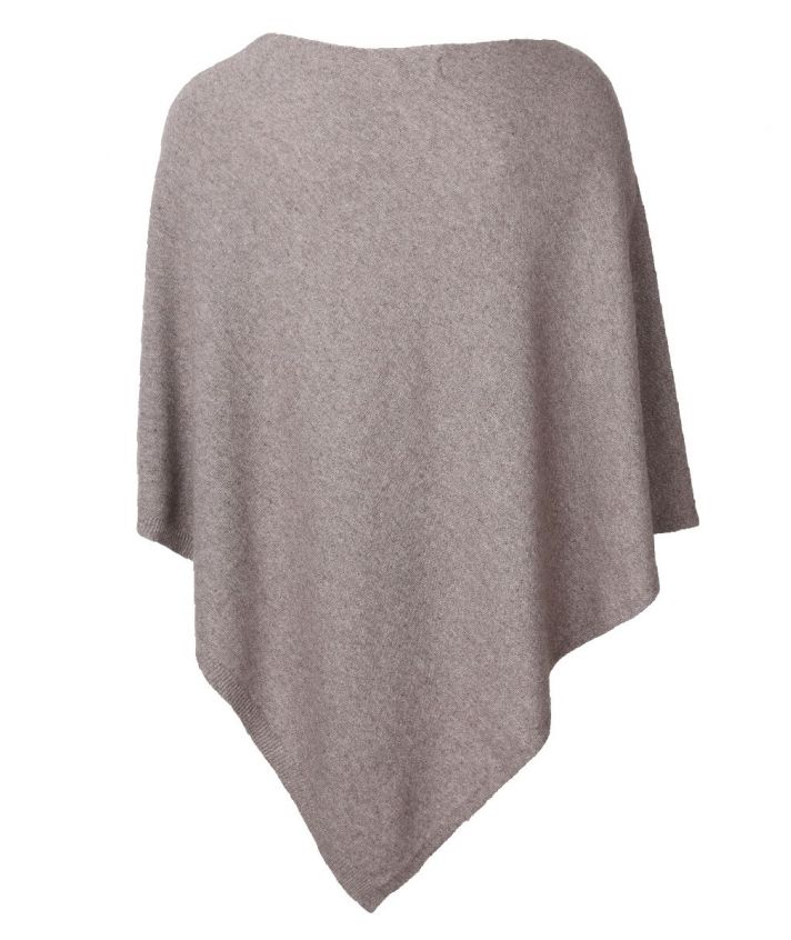 Taupe kleurige poncho met ronde hals, vervaardigd uit hoogwaardige materialen zoals premium-kasjmier, wol en viscose. Deze stijlvolle keuze straalt zowel comfort als klasse uit.