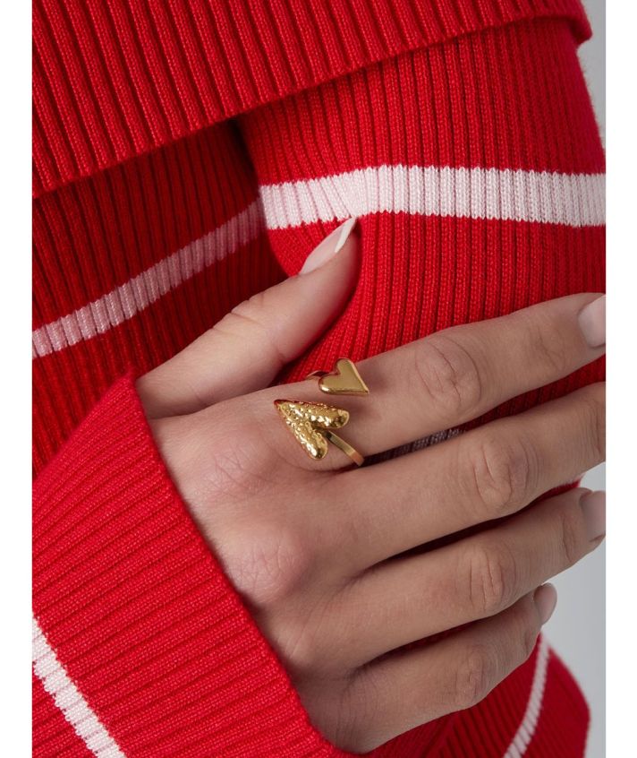 Deze goudkleurige hartjes ring is gemaakt van stainless steel en blijft daardoor lang mooi zonder te verkleuren. Het subtiele design met hartjes geeft een romantische en tijdloze uitstraling. Perfect om solo te dragen of te combineren met andere ringen.
