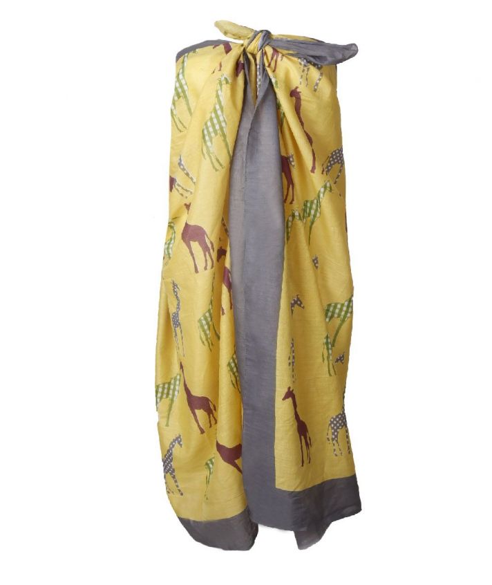 Katoenen sarong in zachtgeel en grijs met giraffen print.