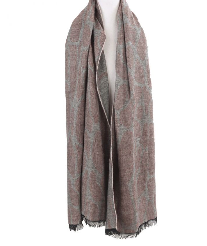 Fijn geweven sjaal met cheetah print in licht-oudroze. De sjaal heeft rondom rafel franjes.