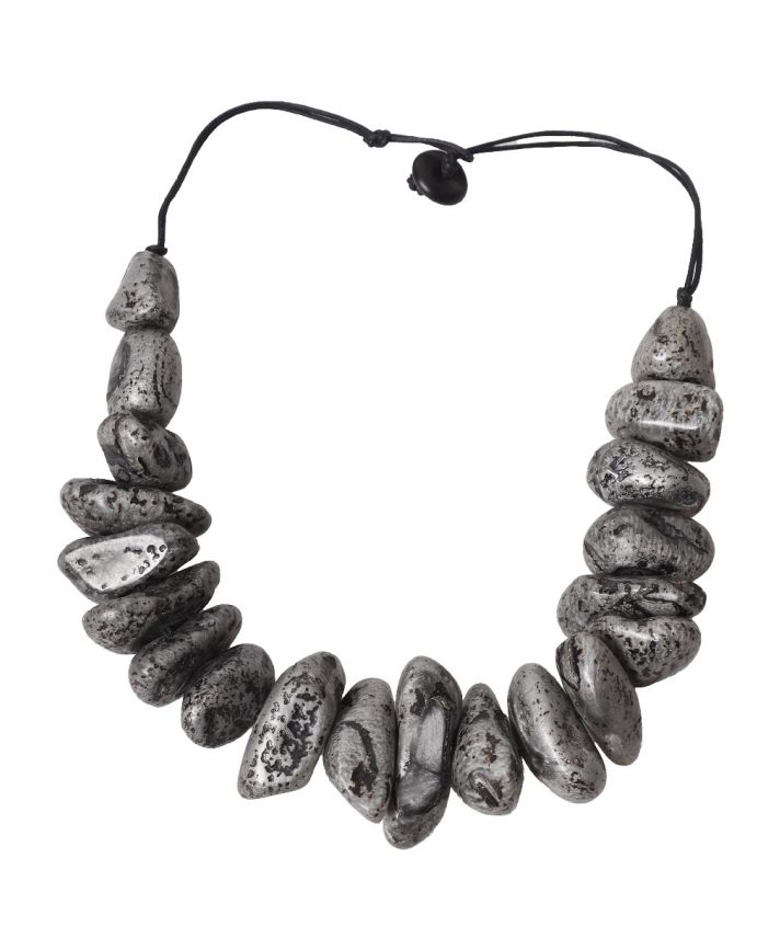 Statement ketting met kiezelsteenvormige kralen van kunststof aan verstelbaar waxkoord.