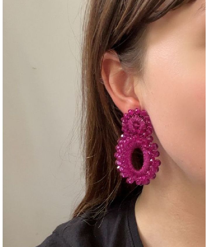 Statement oorbellen met kralen de kleur donkerblauw. De oorbellen zijn 4.5cm lang en 3cm breed.