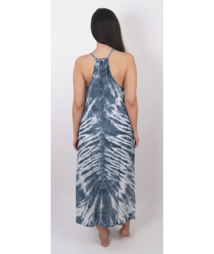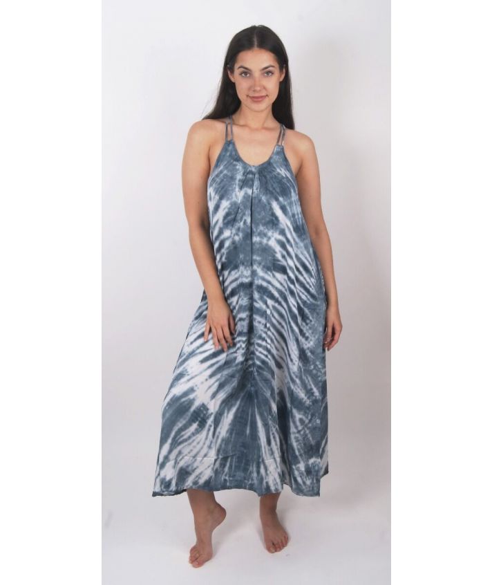 Strandjurk met tie-dye print in de kleuren grijs-blauw en wit.