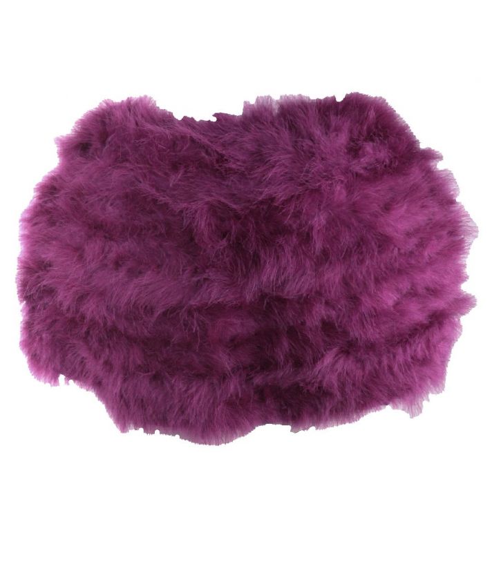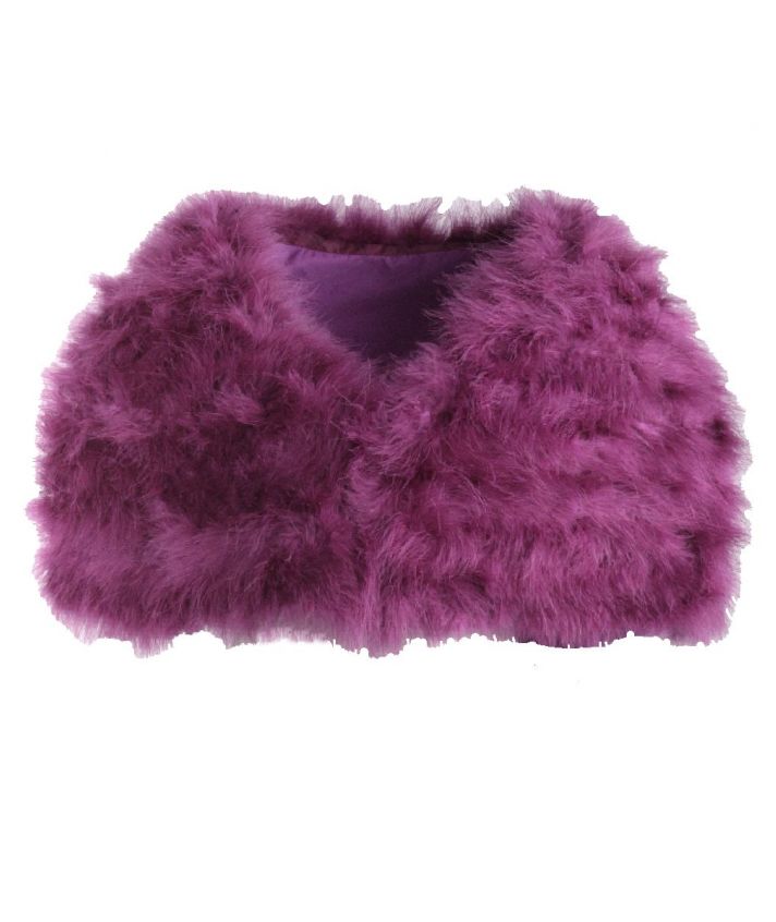 Pruimenpaarse veren stola. Het ronde model zorgt ervoor dat de schouders compleet bedekt zijn en geheel sluit met haaksluiting.