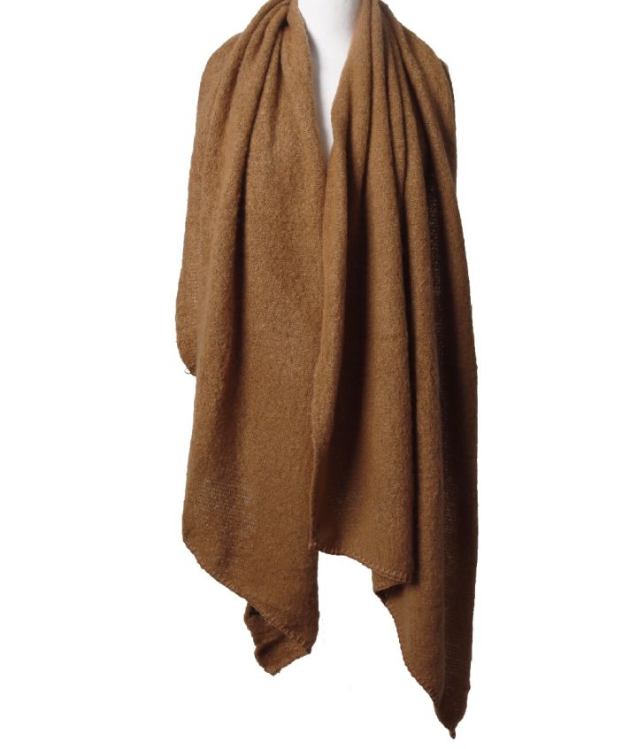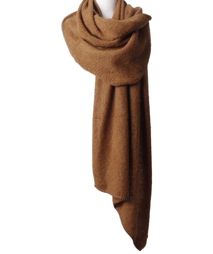 Superzachte wol-blend omslagdoek in camel, heerlijk warm en veelzijdig. Draag hem als omslagdoek of grote sjaal; het gehaakte stiksel geeft een stijlvolle afwerking.
